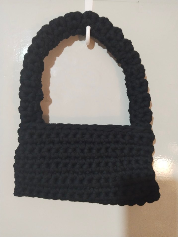 Siyah, örgü tasarıma sahip rahat ve desensiz kadın çantası, günlük kullanım için uygundur.