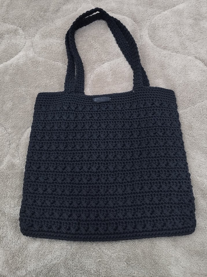 Siyah örgü kadın çanta, sade ve rahat tasarımıyla günlük kullanıma uygundur el yapımı