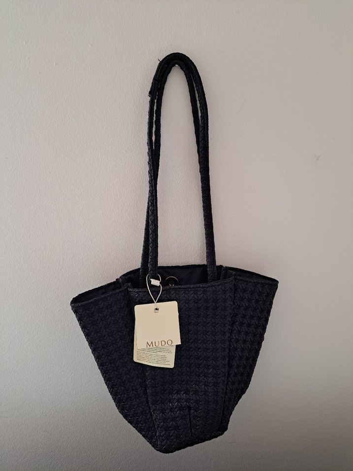 Siyah örgü dokulu, uzun saplı kadın çantası. "MUDO" etiketi ile günlük ve ofis kullanıma uygun. #mudo #mudoçanta #çanta Ayrıntılar fotolarda var!