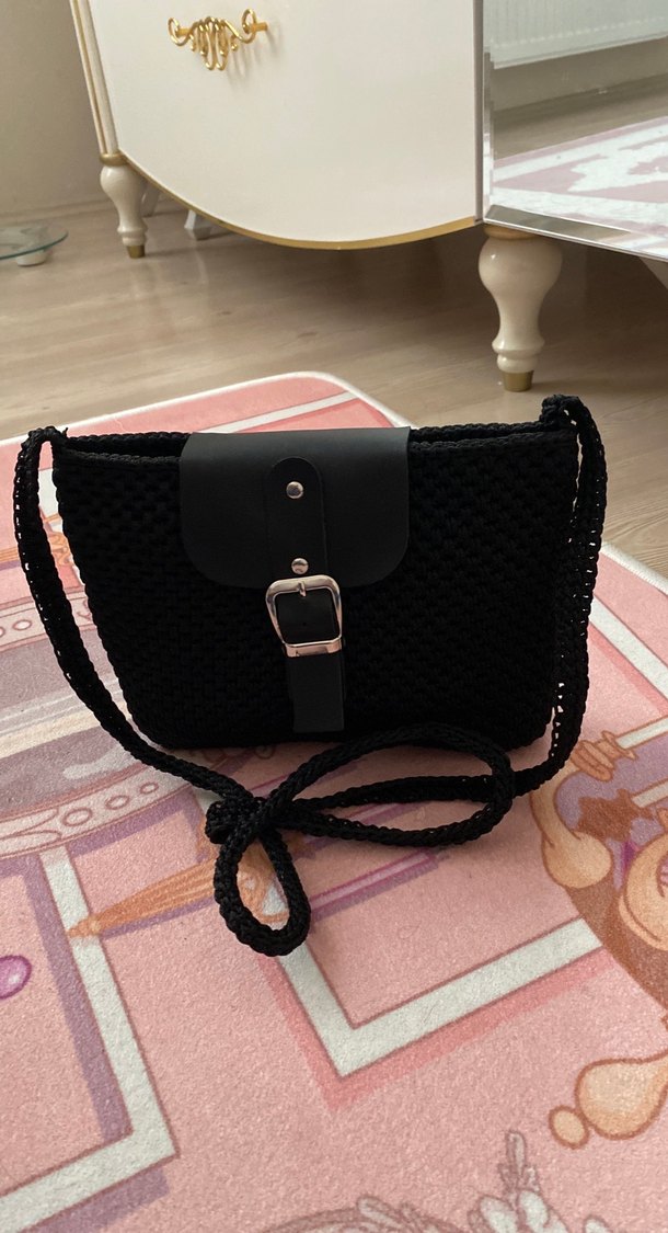 Siyah Örgü Kadın Çapraz saplı Çanta