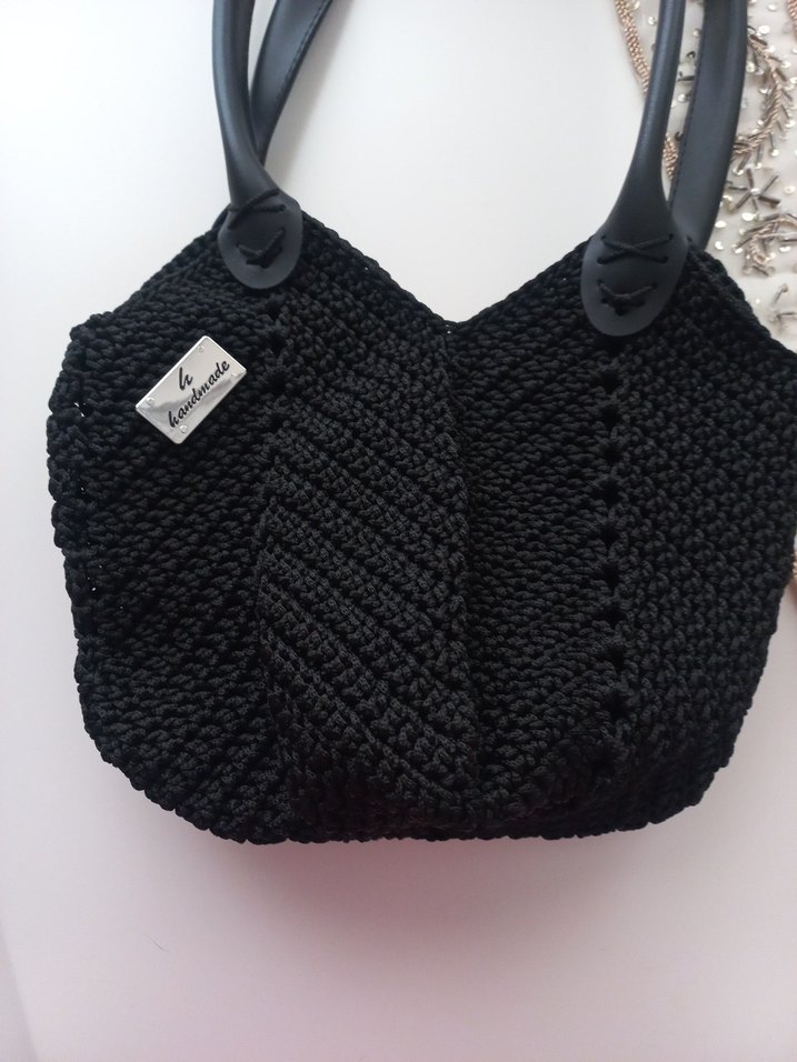 Yumuşak örgü kumaştan, sağlam saplı siyah örgü kadın el çantası, rahat ve gotik tarzı bir araya getirir.makrome ipinden örülmüştur