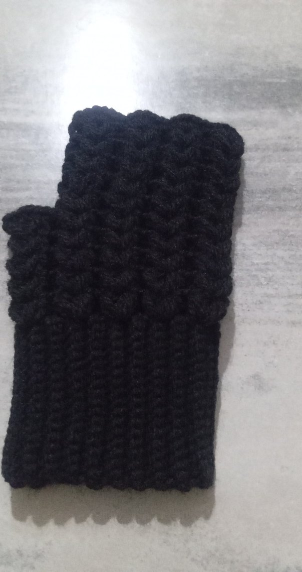 Siyah örgü kadın eldiven, rahat ve gotik tarzda. Yumuşak örgü kumaştan yapılmış, sıcak tutar ve sade, koyu bir görünüm sunar.