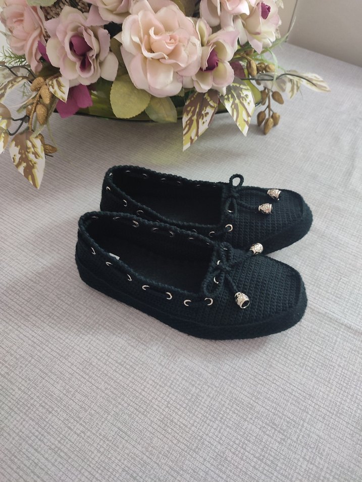 El örgüsü 38 numara kadın ev ayakkabısı yeni örülmüştür