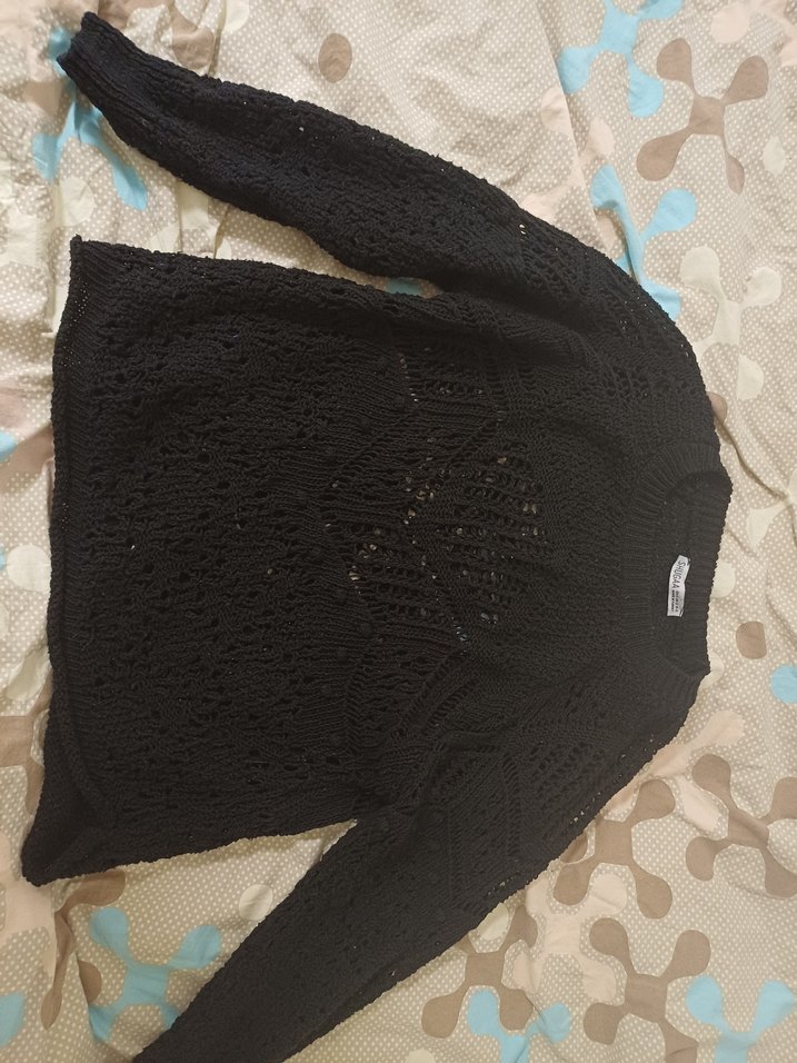 Siyah renkli, uzun kollu, yuvarlak yakalı örgü kadın kazak. Rahat ve bol kesimiyle günlük kullanıma uygun, hafif gotik tarzda bir modeldir.