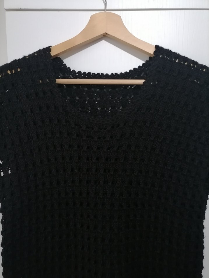 Siyah renkli, örgü kumaştan uzun kollu, yuvarlak yaka ve bol kesim kadın kazağı. Minimalist ve desen içermeyen tasarıma sahiptir.