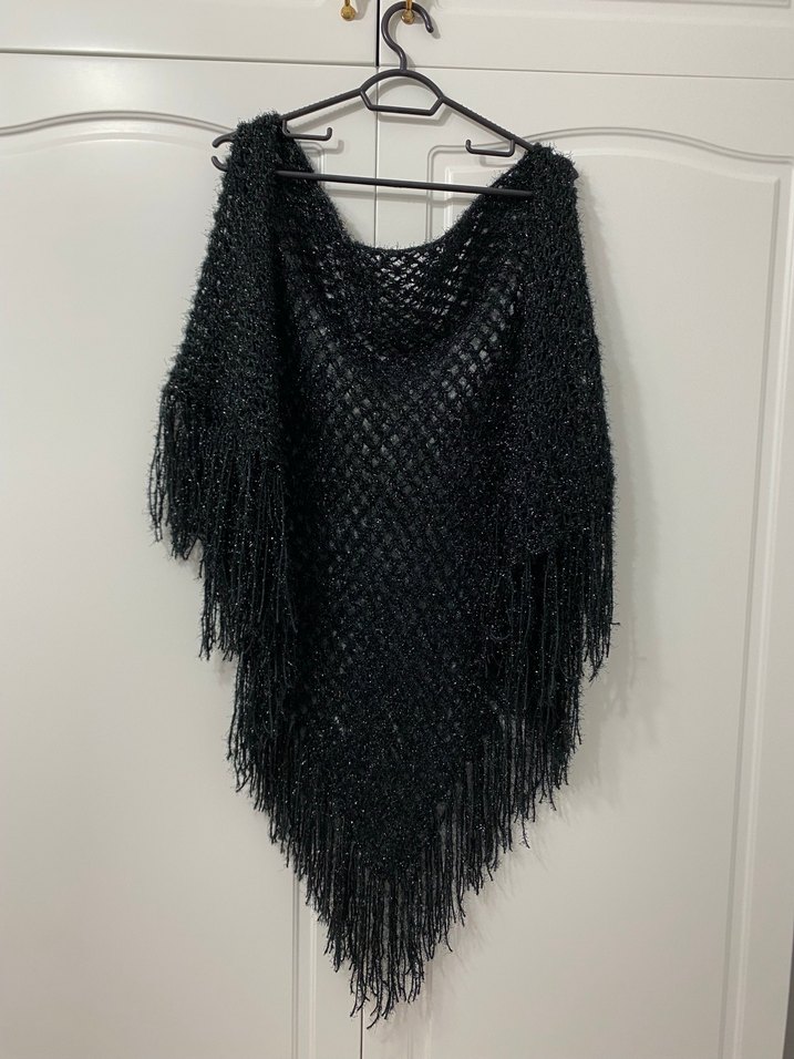 Siyah Örgü Kadın Panço