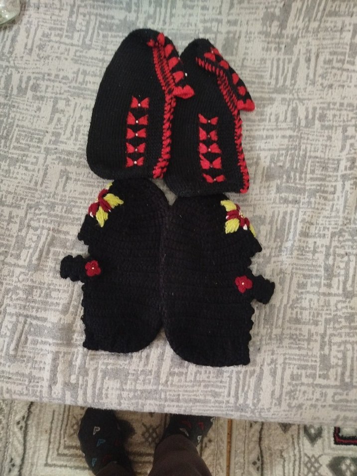 Renkli süslemelere sahip siyah örgü kadın iki adet patik, rahat ve retro bir stile sahiptir. Bohem tarz için uygun.