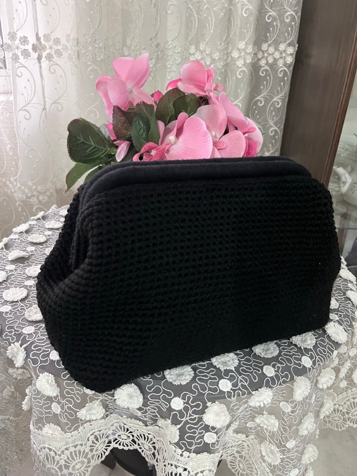 Siyah Örgü Kadın Portföy Çanta