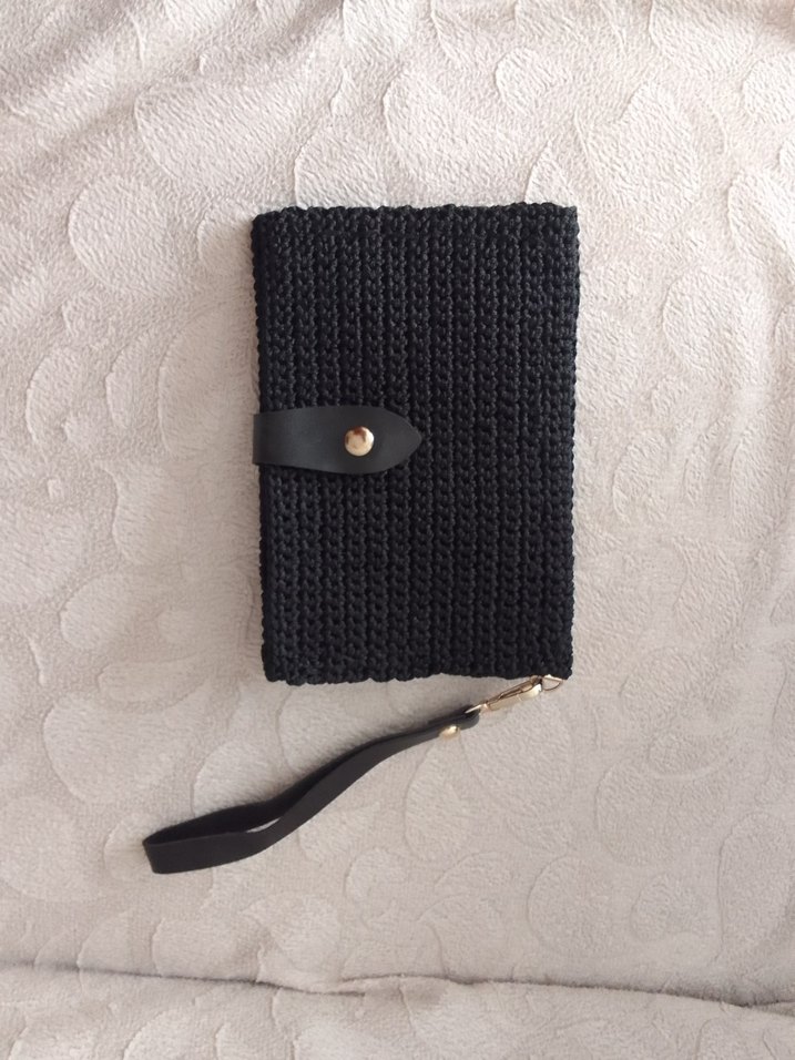 Siyah renkli, örgü dokulu kadın portföy cuzdan Basit ve bohem tarzıyla rahat bir his sunar. Çıkarılabilir bileklik askısı bulunur, günlük kullanıma uygundur.