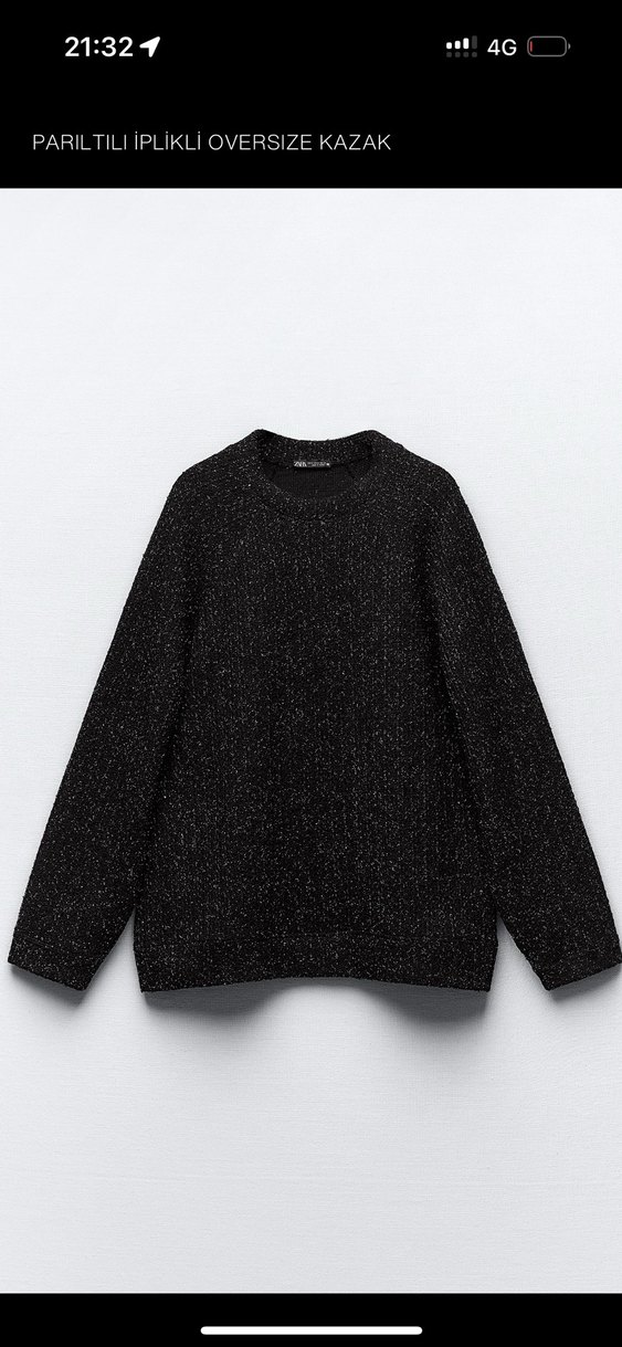 Siyah örgü yünden yapılmış, uzun kollu ve yuvarlak yakalı, rahat kesim normal uzunlukta kadın kazağıdır.