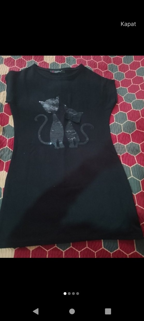 Koyu siyah renkte örgü kumaştan, önünde iki kedi silueti baskılı sokak stili tişört.