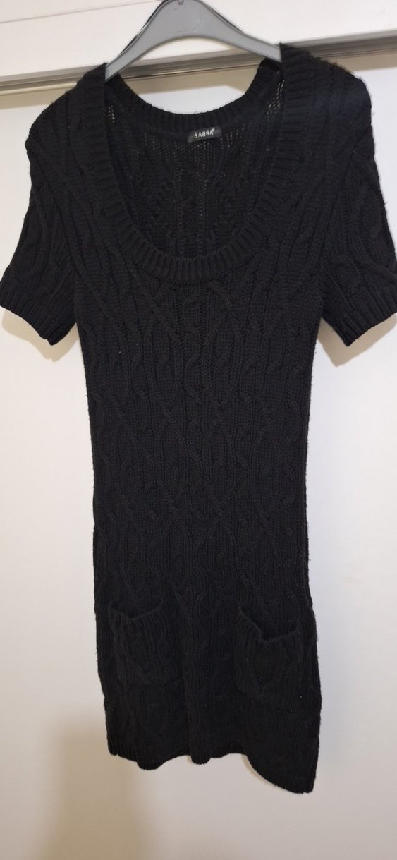 Fitted kesim siyah örgü kısa kollu kazak, yuvarlak yaka ve midi boyda. Rahat örgü dokusuyla günlük kullanıma uygun.