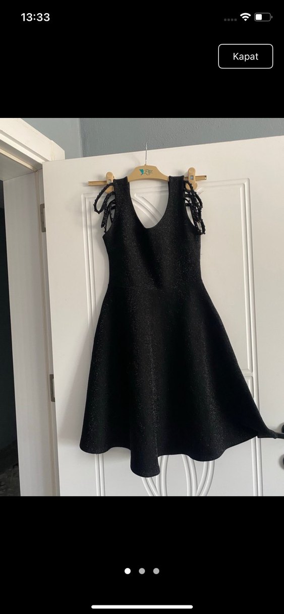 Siyah örgü mini elbise, halter yaka ve askılı kol detayları ile gotik parti tarzı için uygun.
