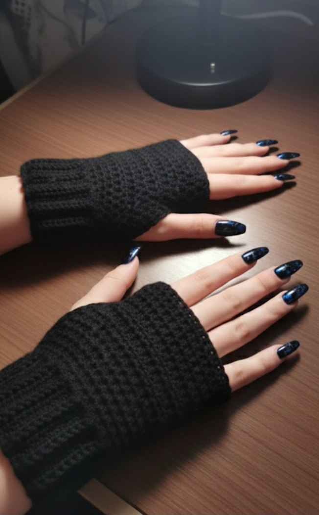 GÖRSEL BANA AİTTİR ✔️ İLAN AÇIYORUM Yumuşak örgüden yapılmış, parmaksız siyah kadın eldivenleri, rahat ve sade gotik tarz sunar.