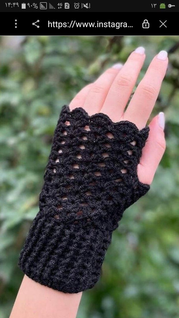 Siyah, örgüden yapılmış parmakları açık kadın eldiveni. Rahat ve gotik tarzıyla eski moda bir görünüm sunar.