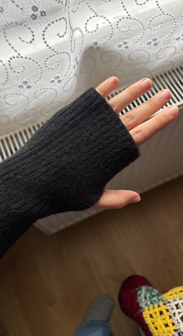 Siyah renkli, örgü parmakları açık kadın eldiveni, rahat ve gotik tarzıyla şık bir görünüm sunar. Bileği kaplayarak ekstra sıcaklık sağlar.