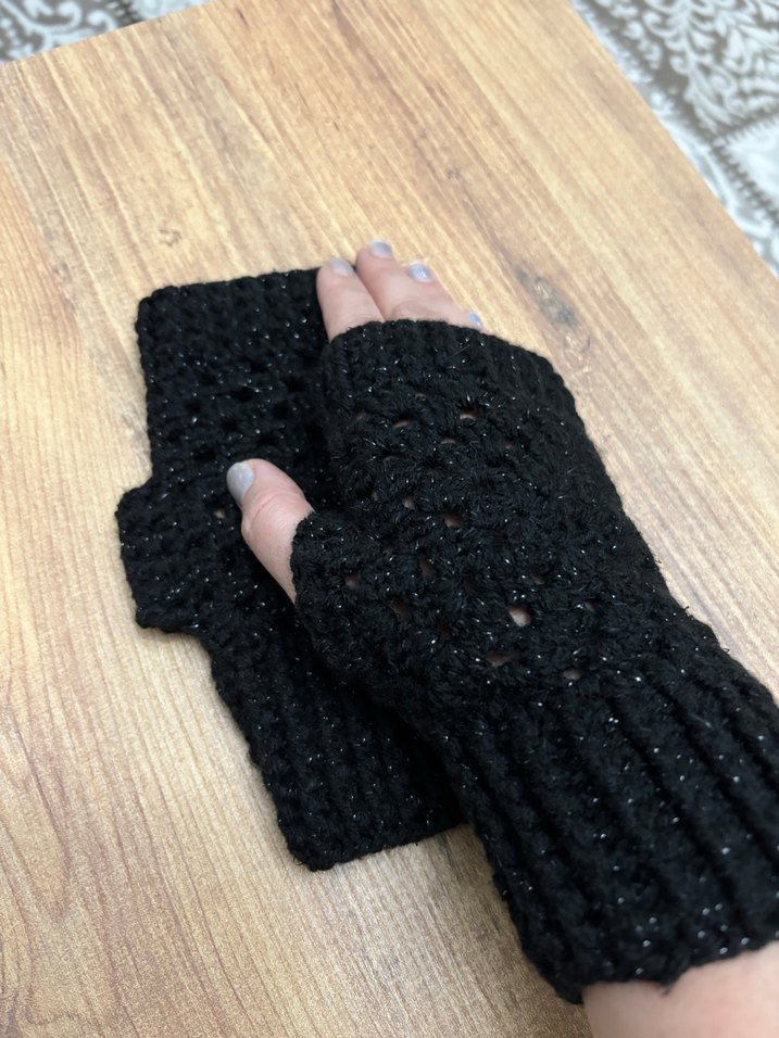 Siyah Örgü Parmaksız Kadın Eldiveni