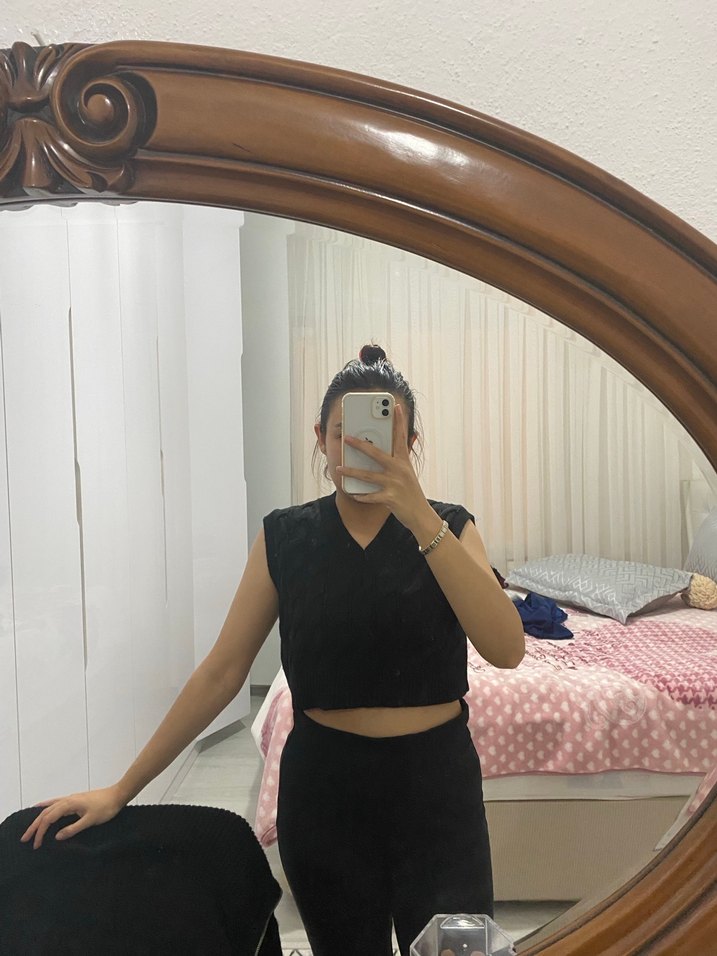 Siyah crop süveter örgü defosu yok