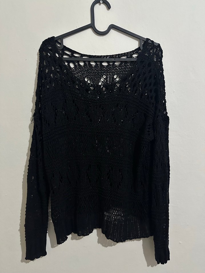 Siyah Örgü Uzun Kollu Kadın Kazak