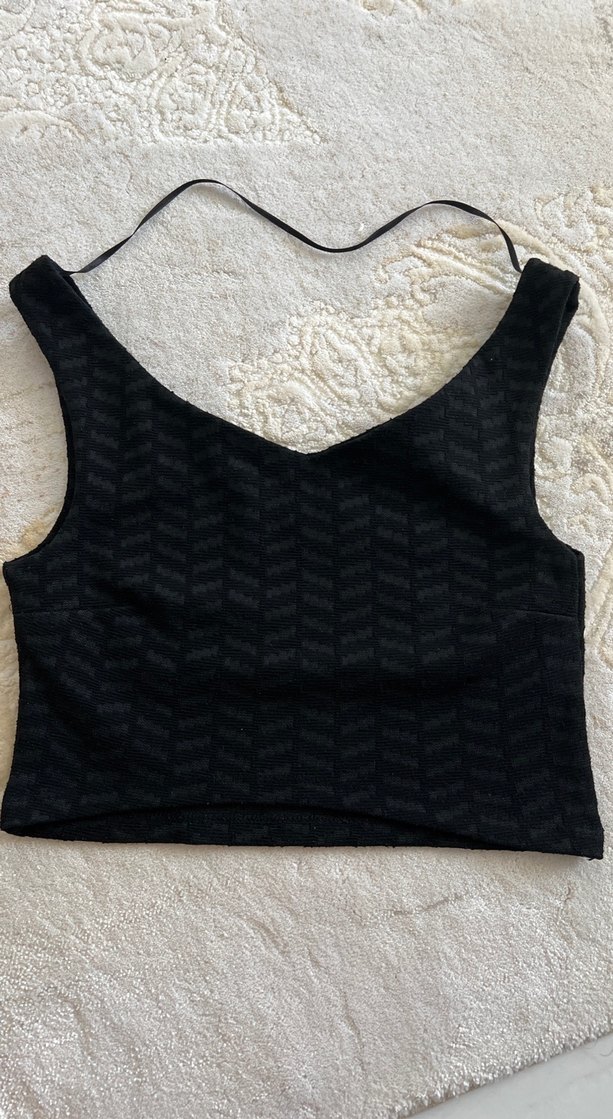 Sentetik kumaştan yapılmış, V yaka ve ince askılı, siyah örgü mini atlet. Günlük kullanıma uygun gotik tarzda, vücuda oturan kesim.