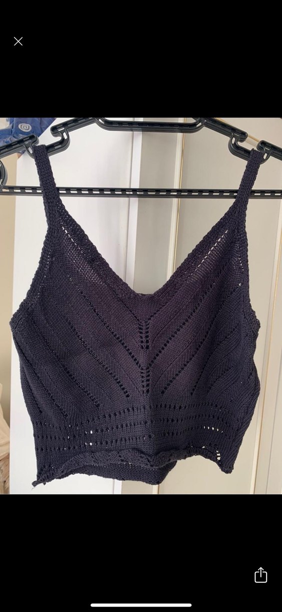 Siyah örgü kumaştan, V yakalı ve ince askılı kadın atlet. Fitted kesimi ve gotik tarzıyla günlük kullanıma uygun şık bir parça.