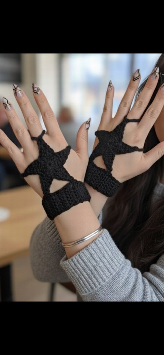 GÖRSEL BANA AİTTİR ✔️ İLAN AÇIYORUM Siyah örgü malzemeden yapılmış, yıldız desenli gotik tarzda kadın eldivenleri. Bohem ve retro havası ile dikkat çeker. Rahat ve şık bir görünüm sunar.