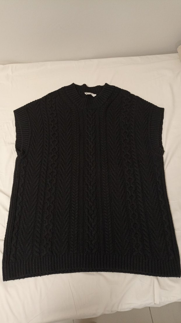 Siyah örgü kadın süveter, yüksek yakalı ve kolsuz tasarıma sahiptir. manuka markası,SM beden