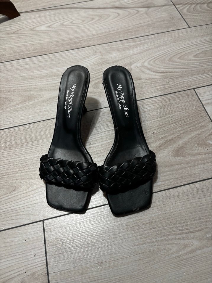 Siyah Örgülü Topuklu Kadın Terlik