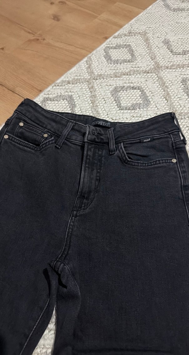 Gri renkte, orta boy ve regular fit kesime sahip kadın denim pantolon. Tokalı detayı ve sade deseniyle günlük kullanıma uygundur.
