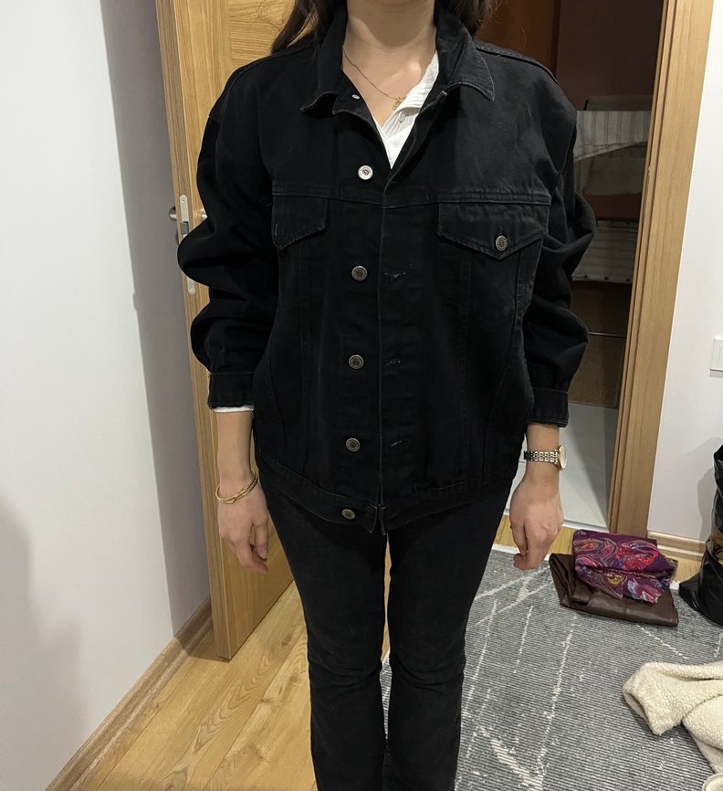 Siyah kot kumaştan, düğmeli, oversize kesim midi boy kadın ceket. yaka ve uzun kolludur, günlük rahat kullanıma uygundur. Orjinal mavi markadır.