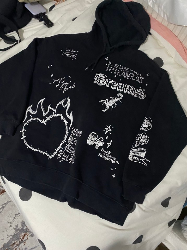 Siyah oversize Kapüşonlu Baskılı unisex Sweatshirt