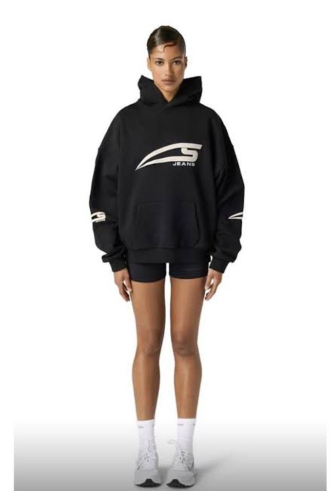 Siyah, yumuşak ve sıcak kumaştan, yuvarlak yaka ve uzun kollu oversize sweatshirt. Spor görünüm için rahat, bol kesim.