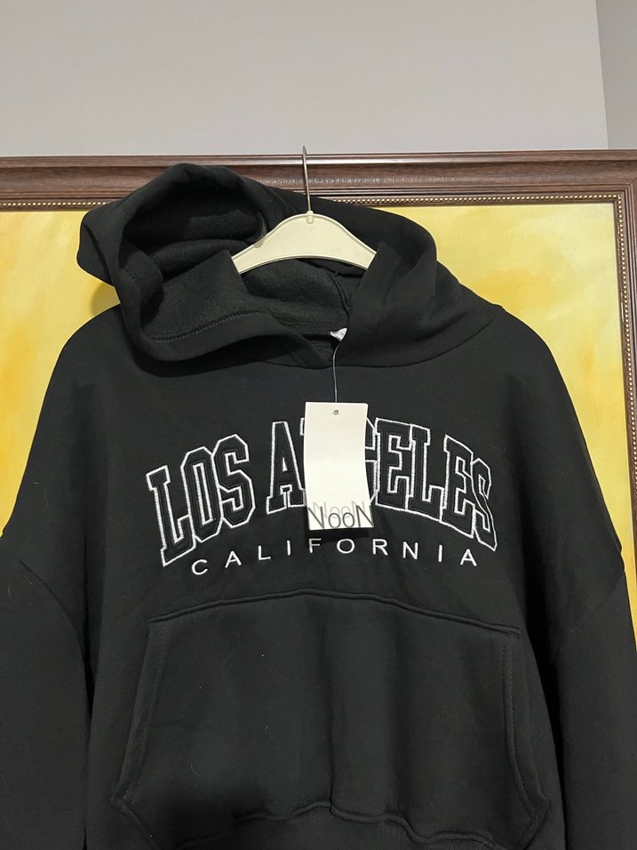 Siyah, uzun kollu, baskılı Los Angeles California yazılı, oversize kesim sweatshirt. Yumuşak ve rahat kumaştan, günlük kullanıma uygun.