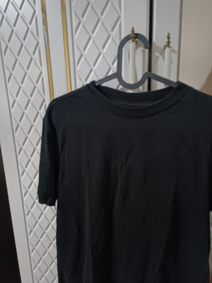 Siyah kadın tişörtü, yuvarlak yaka ve kısa kolludur. Oversize kesimi ve yumuşak sentetik kumaşıyla rahat günlük kullanım sağlar. Minimalist, sokak stili şıklığı sunar. bir kusuru yoktur sıfır ürün.