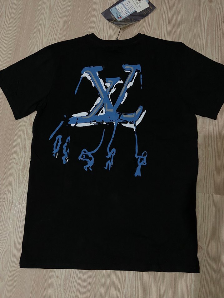 Siyah, pamuklu, kısa kollu, oversize kesim tişört. Önünde Louis Vuitton baskısı ve cırt cırt detay bulunur. Sokak stiline uygun.