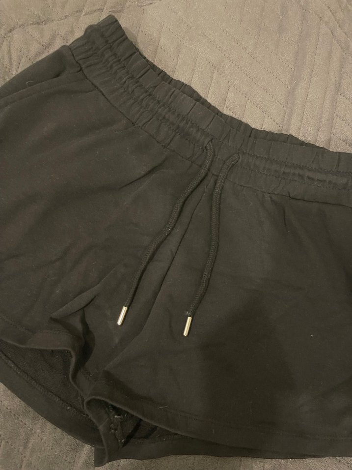 Nefes alabilen keten kumaştan yapılmış, elastik bel ve bağcıklı siyah oversize mini şort. Günlük kullanım için uygun, sade sokak stili.