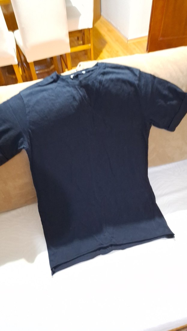 Yumuşak pamuktan yapılmış siyah, oversize erkek tişörtü, kısa kollu ve yuvarlak yakalı. Rahat ve günlük kullanıma uygun sokak stilinde.