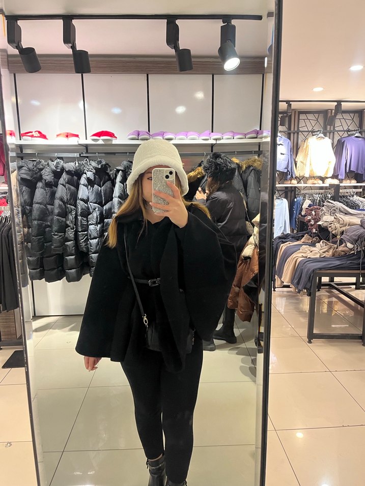 Siyah, bol kesim midi kaban, uzun puff kollu ve yüksek yakalıdır. Yumuşak ve sıcak kumaştan üretilmiştir, günlük kullanıma uygundur. 1-2 kez kullanıldı temiz sorunsuz sıfır sayılır şapkayı da ayrı şekilde satıyorum