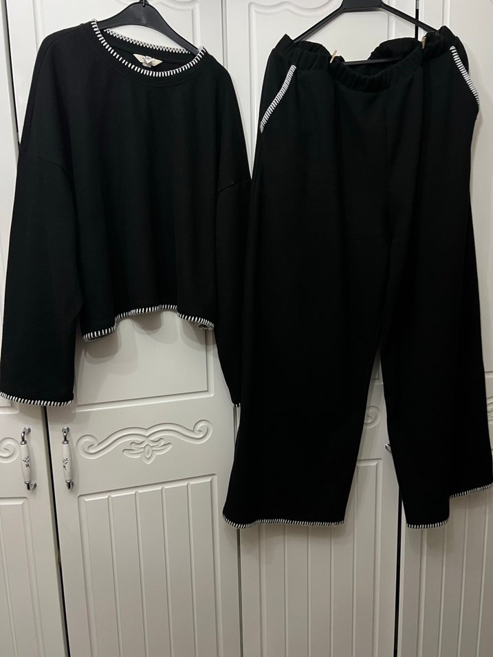 Siyah Oversize Street Wear Takım uçları el işi