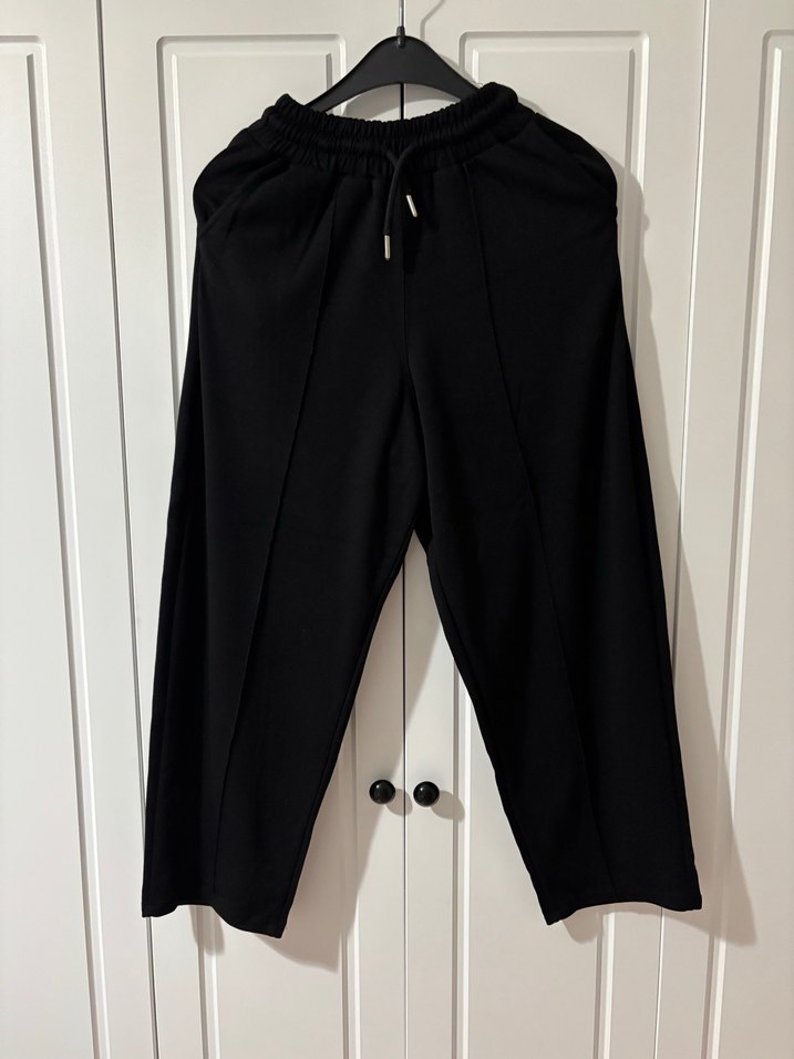 Siyah oysho kumaştan, salaş kesim ve 1.55-1.60 boya uygun havuç kadın pantolon. Günlük kullanıma uygun, desen içermeyen rahat ve şık bir modeldir.