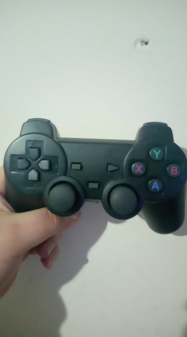 Çift analog çubuklu ve renkli aksiyon butonlarına sahip siyah oyun konsolu joystick . 2 adet