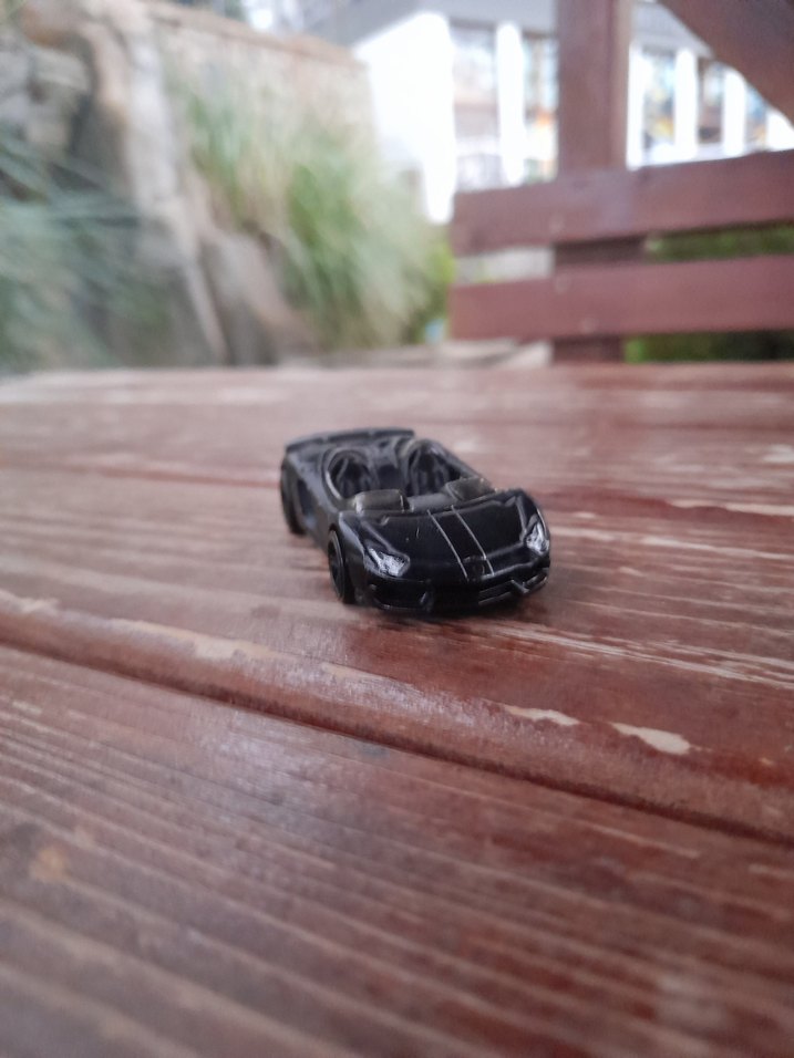 Detaylı tasarıma ve pürüzsüz yüzeye sahip küçük siyah oyuncak araba.