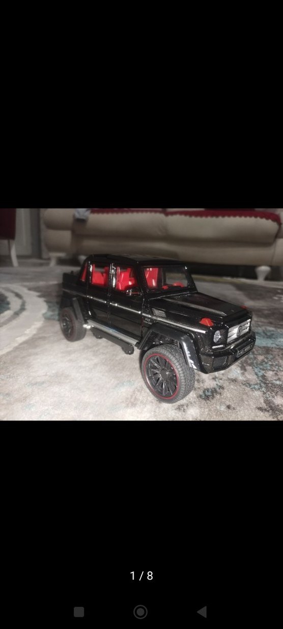 Kırmızı iç detaylara sahip siyah oyuncak araba, lüks SUV görünümünde gerçekçi tekerlek ve detaylarla donatılmıştır.