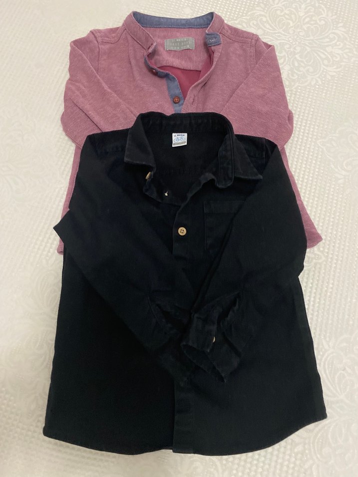 Siyah pamuklu ve pembe tonunda uzun kollu erkek gömleği. Düğmeli ve yakalıdır, bol kesim ve desensiz yapıya sahiptir. Bir kac kez kullanıldı hıc bır yerınde sorun yoktur.