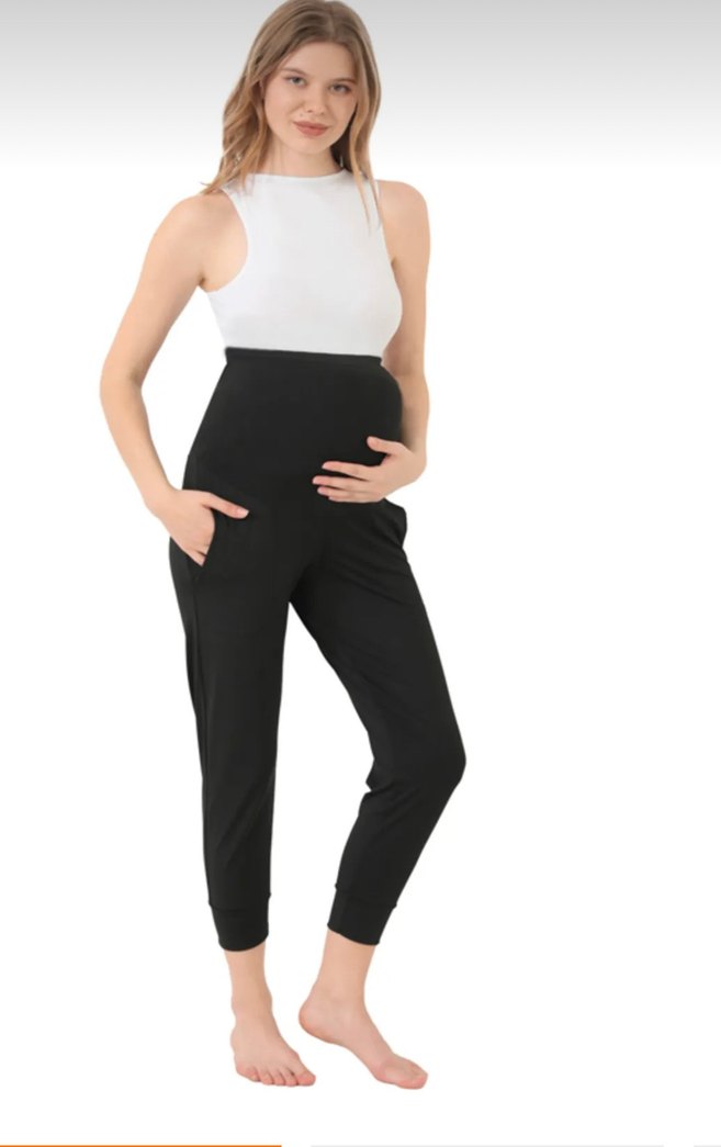 Siyah Pamuklu Hamile Eşofman Altı