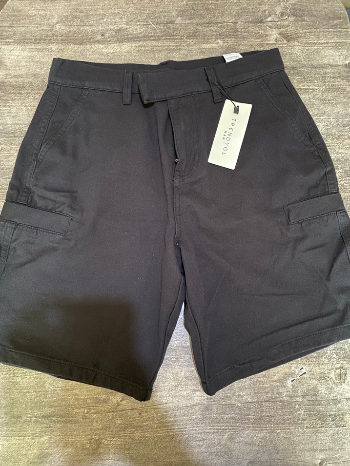Kemerli, bol kesim siyah pamuklu erkek şort. Günlük kullanıma uygun,desensiz tasarımda, rahat sokak stili şort.