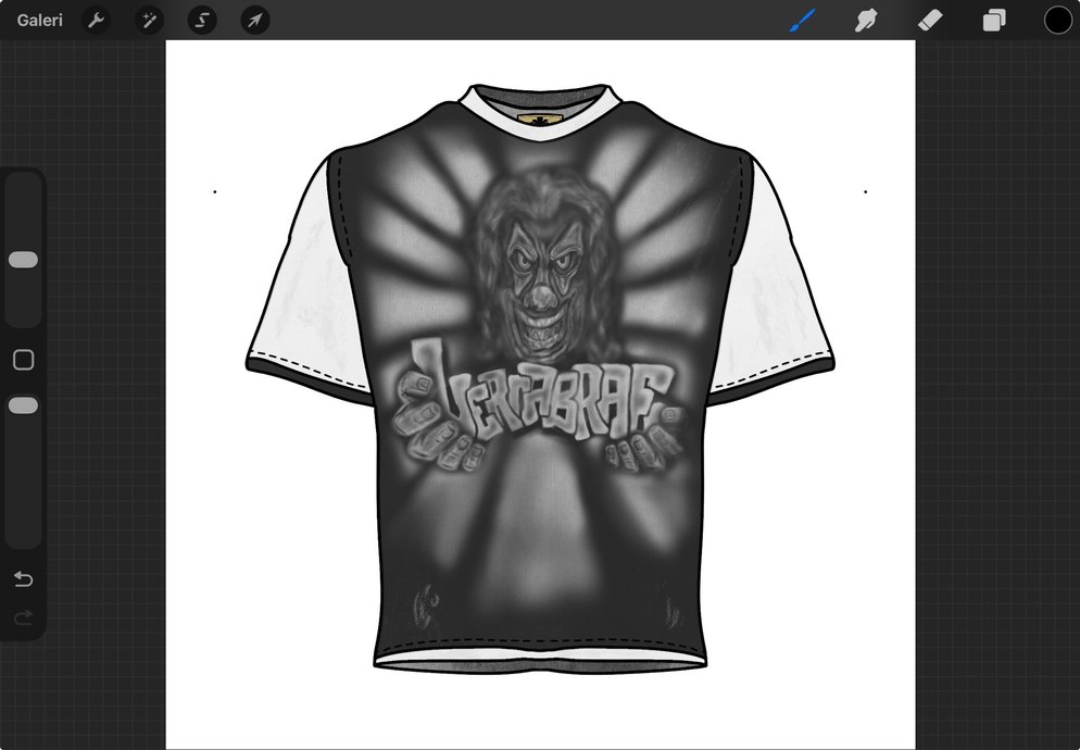 Siyah kısa kollu, baskılı grunge punk desenli, yuvarlak yakalı tişört. Rahat kesim, yumuşak ve sıcak kumaştan, "FABRAF" yazılı.