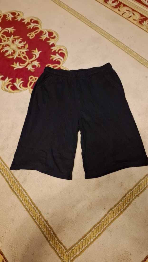 Siyah pamuklu penye erkek çocuk şort.