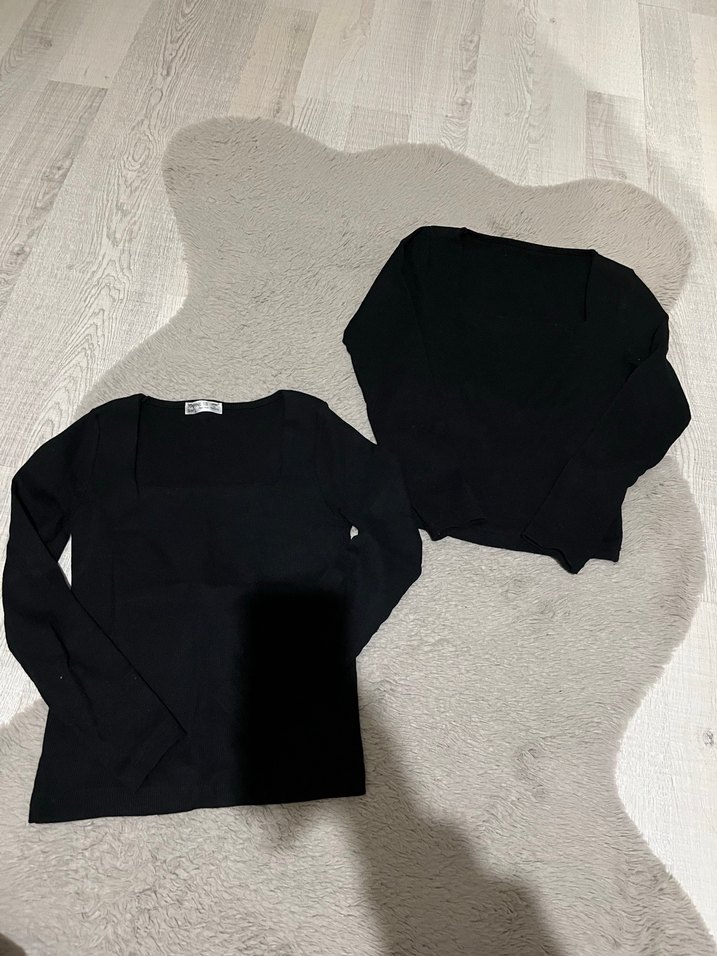 Siyah Pamuklu Uzun Kollu kare yaka Kadın Bluz