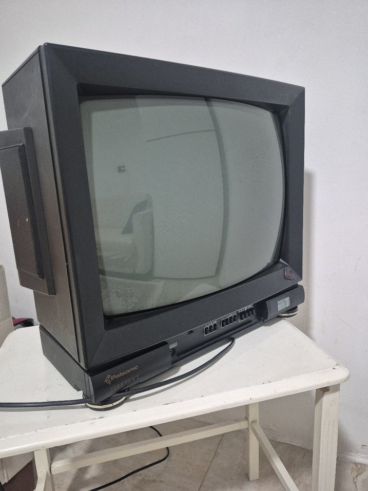 Ön panelinde kontrol düğmeleri bulunan kavisli ekrana sahip siyah Panasonic CRT monitör. Dayanıklı tabanlı klasik büyük tasarım. ️parça ve tamir icin uygundur .çalışıyor.